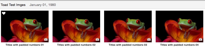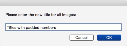 For example, if you enter "Birthday", the titles will change to "Birthday_0001", "Birthday_0002", etc. The number of digits is a parameter in the script.