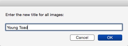 tell im set the name to input & "-" & ntext as text -- set the title to the input plus formatted number set counter to counter + 1 end tell end repeat end if end tell return "Done. The titles of " & (length of imageSel) & " photos have been changed."end runThe Automator workflow looks like this:You can save the workflow as a service or as an application. When run the first window is