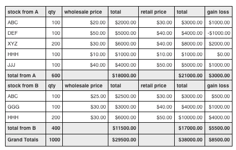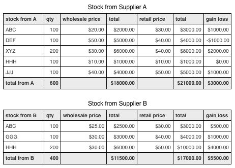 In this example, stock is purchased from a number of suppliers and resold.