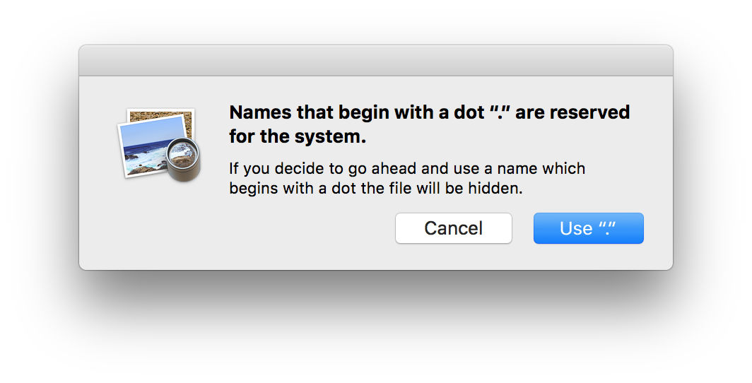 But if you first add a title to an image and then delete the title text again, the photo will be in a weird state: Photos will treat it as having a title, but the title string is empty. The filename of the exported file will just be ".jpg", and the Finder will hide this photo and treat it like an invisible system file.