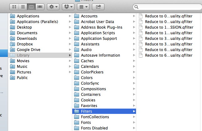 After download and decompressions, *simply drag the downloaded "Filters" folder to your Library folder* (inside your user folder to install it just for this user, or at the root level of your hard disk in order to install it for all users) - And if you already have such a folder, simply copy the contents of the downloaded folder into it.