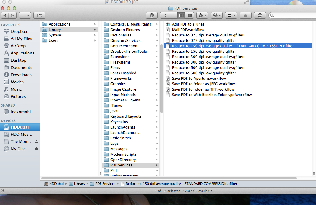 Hmmm. I tried your "JPEG compression - STANDARD.qfilter" filter, and it turned a 762K journal article pdf file (mostly text, but with a few B&W figures), into a 4.7Mb file. No joy. The built-in 150dpi STANDARD COMPRESSION filter turns it into a 913K file.