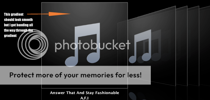 A good example of the bad gradients can be seen in the default icon of the coverflow. Here you should see a smooth circular gradient going from the top down going from white to black, but if you own a new macbook pro there is a good chance you don't see a smooth gradient.