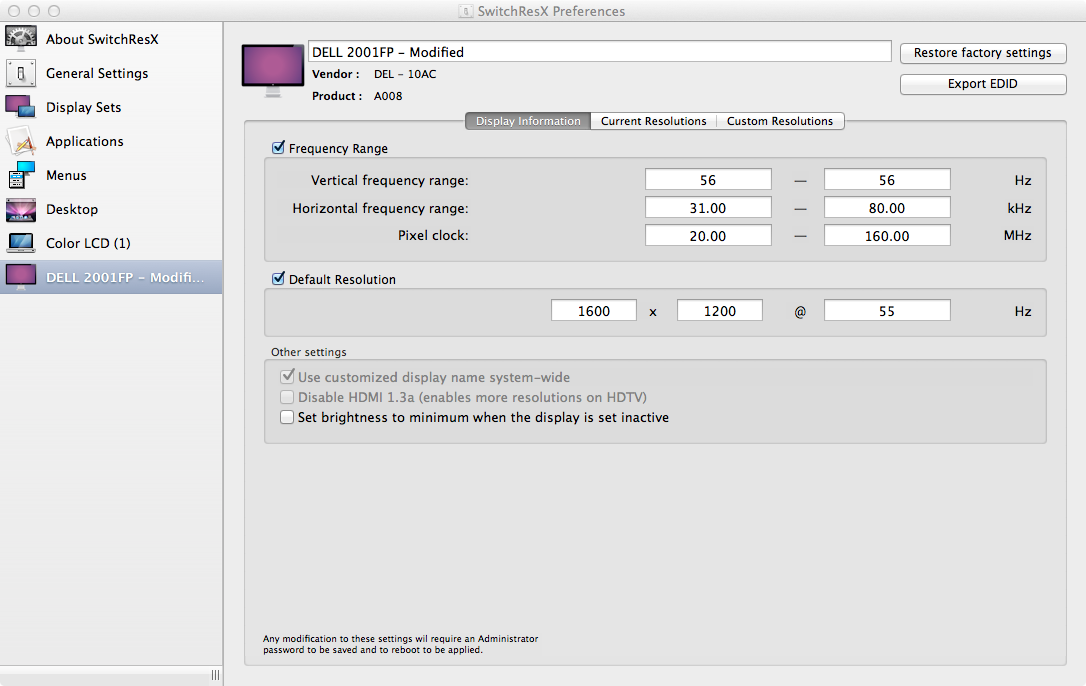 I was able to do this with a Dell 2001FP display that started flashing to black. When I checked, the 'Display Info' screen did *not* match those of the Dell documentation for this display. I changed these and I haven't had a flash-to-black yet.