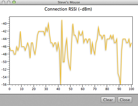It has been more than a month since then and I have never experienced any dropout in the MM connection. To get a lost MM connection now, I would have to disconnect the batteries intentionally. Now that (after prolonged gaming usage of the MM) the battery level is down to 52%, I did more experiments with the MM, while observing RSSI (Received Signal Strength Indicator). See picture below.