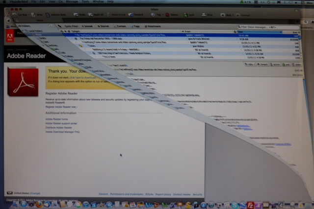 • Screen turns white with colored vertical pinstripes, computer still running.