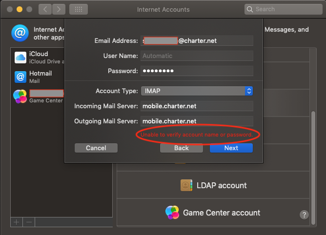 - When setting up a fresh Charter account, I get a password error, even though the password is correct.
