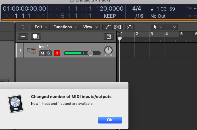 I've been trying to make my midi controller to work with logic. But when I play a note I can't get any sound. Seems like it is receiveng the correct note but the ''midi in'' is muted.