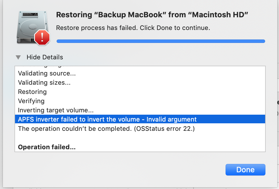 Inverting target volume APFS inverter failed to invert the volume resource busy osstatus error 16