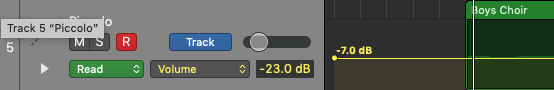 Hi there, I'm reasonably new to Logic Pro X having recently migrated from GarageBand. Please see screenshots below of the same Piccolo track at different playhead positions. I've showed Automation to illustrate that the volume level is consistent throughout at -7 dB.
