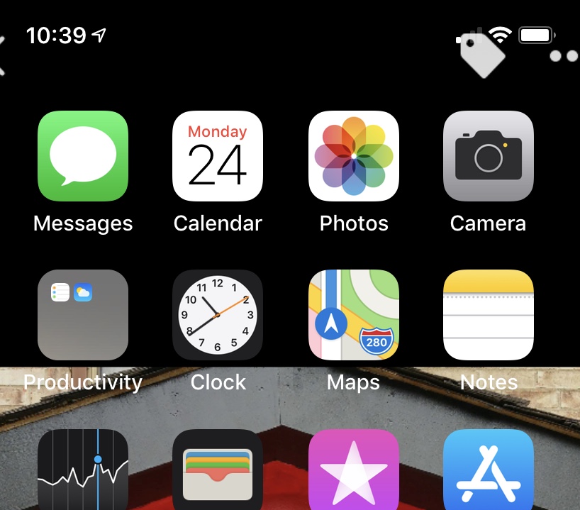 I have a White Tag at the top right of my new iphone XR. It is always there until I launch an app and it goes away. As soon as I return to the home page it appears. What is this and how can I make it go away? Thanks