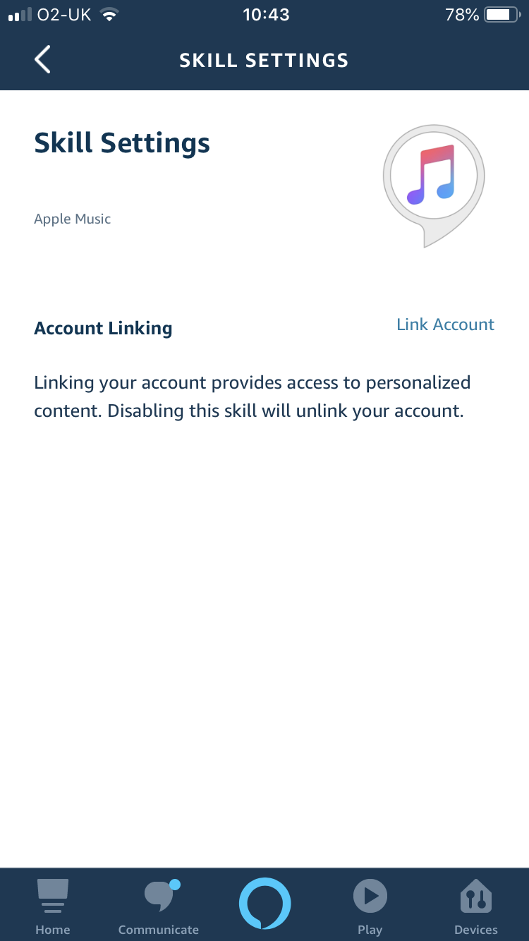 I can’t get past 5-There is no option to Link a New Service. If I physically ask Alexa to enable Apple Music, she can’t find it either. I live in the UK-