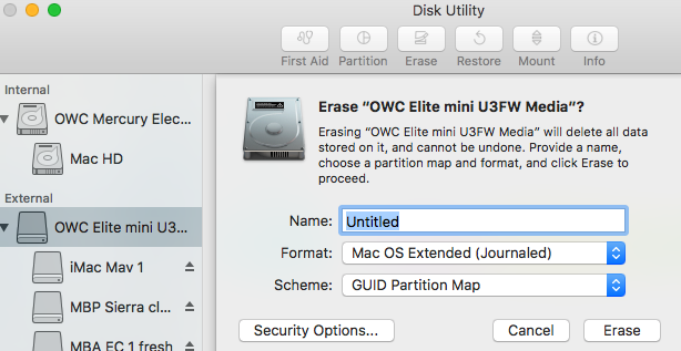 Ok, so, after you plug in the hard drive, go to your Applications folder > Utilities > Disk Utility. Launch that. Click on your G drive which should be listed in the left column. The look in the main window and click on erase. Choose Mac OS Extended (Journaled). Give it a name (like "Photos"or whatever you want instead of "untitled" - that is what the title of the G drive will be). See the screenshot below of my OWC external drive (highlighted) and click on erase.