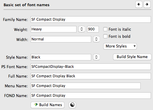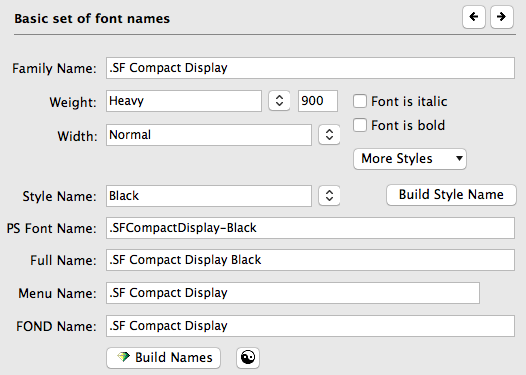 Well, very technically, they don't conflict. Using SF Compact Display Black as an example, the actual system font's internal names look like this: