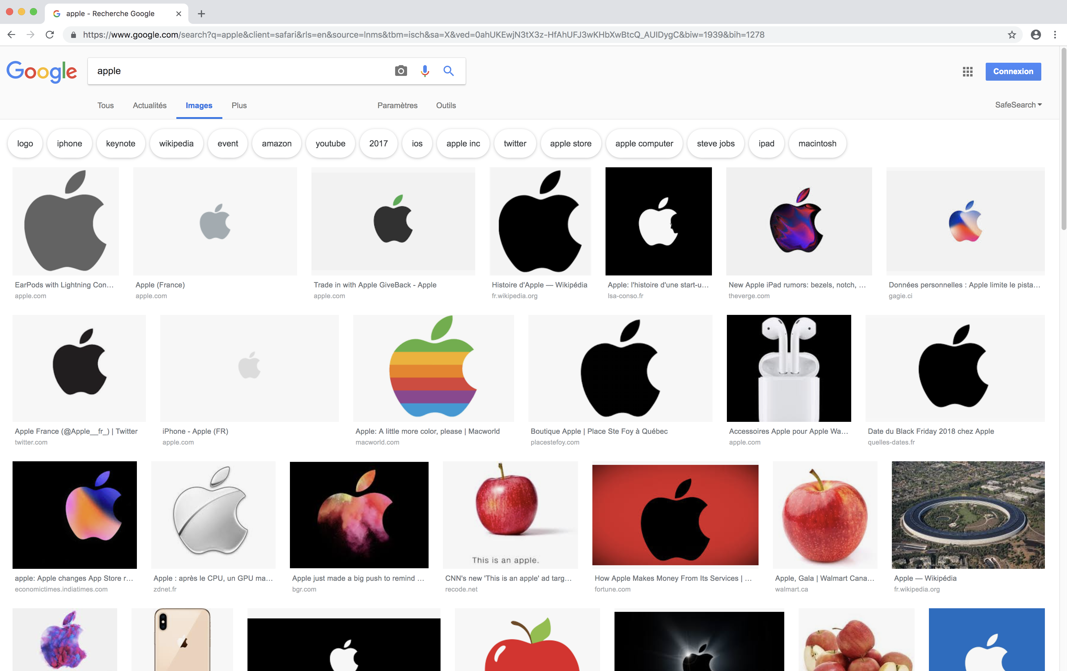I open Safari -> type google.com -> i am searching for "Apple" -> I hit "Images" -> I See a whole range of apple logos. This is the page I want to send to a friend.