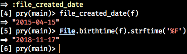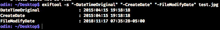 You don't need to run exiftool, unless you want too. The Ruby script will detect if it is installed, and will run it in the background — looking first for the tag 'DateTimeOriginal', and if not found, then the tag 'FileModifyDate' in the given image file. Whichever it finds, it will return a formatted date string as 'yyyy-mm-dd' that will be used for the folder name. If exiftool is not installed, or for some reason, it could not retrieve a date string value for either EXIF tag name, then it will simply get the System creation date from the file.