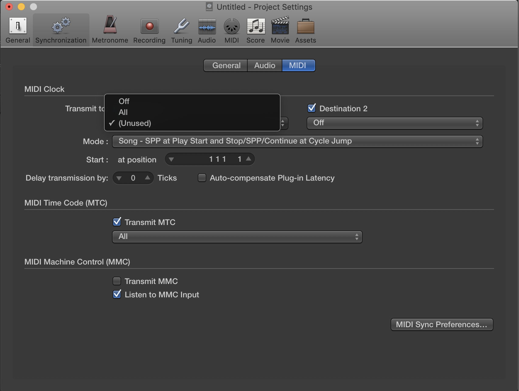 Despite these attempts, my MPK won't appear under the midi synchronization settings in Logic. Here's what appears in my settings (aside from my audio interface when connected):