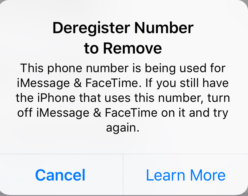 Can't deregister old iPhone 7+ number on new iPhone Xs.