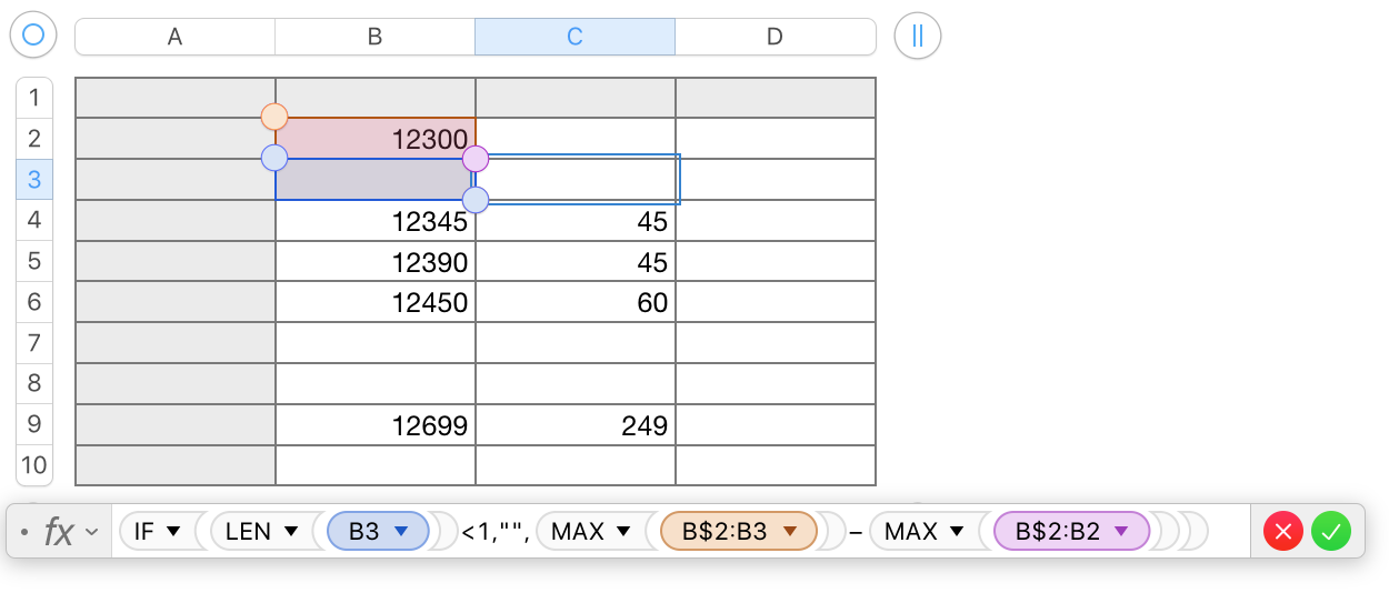 Column C is the Difference from the last meter reading - this is where I will put the formula.