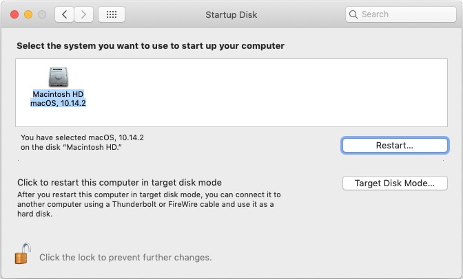 Upon completion of the cloning, I tried to select the SSD in Startup Disk System Preferences, but it was not there to select as you can see here: