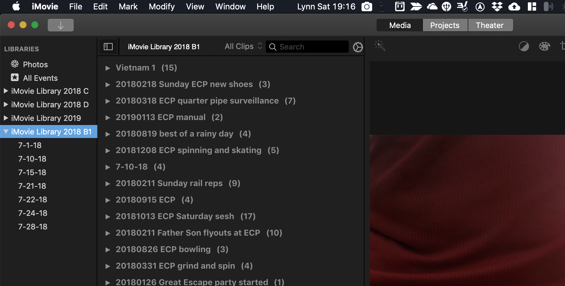 Then I went back to the Test Library 1 Package Contents and Edit/Copied its two random Projects and Edit/Pasted them into the Package Contents of the blank Test Library 2. I then opened the iMovie app in Test Library 2, and sure enough the Projects from Test Library 1 had copied over. The Projects also remained in Test Library 1.