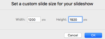 Go to: Inspector > Document > Document > in the Slide Size dropdown menu, select Custom Slide Size then enter the pixel resolution you require so using a 1920 x 1200 resolution: