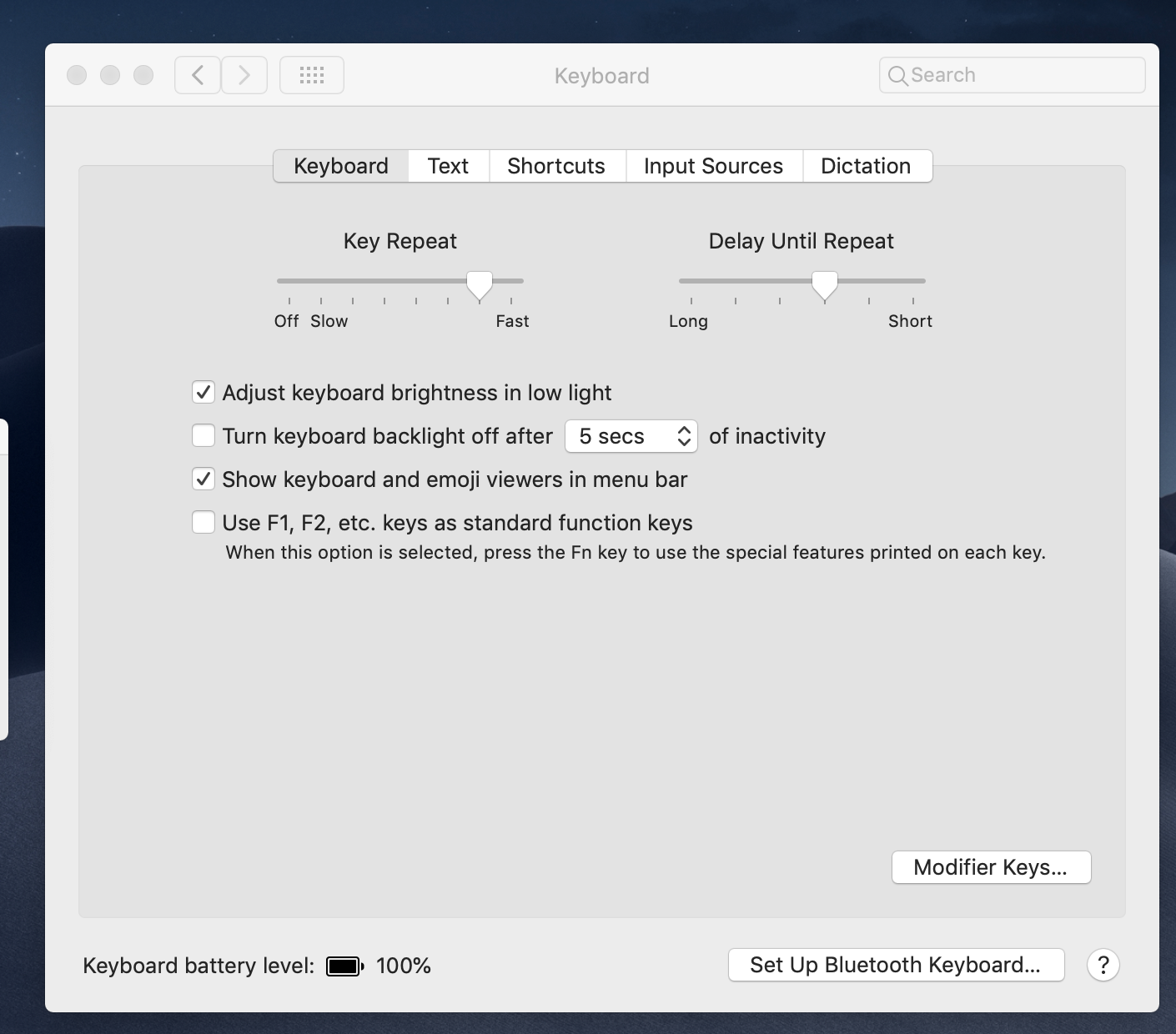 Magic keyboard top row buttons only work when keyboard is plugged in. Option of ‘standard function keys’ in keyboard prefs also disappears when keyboard is unplugged. Tried reseting all connected factory devices and pairing them again. Reset NVRAM. Using a 2014 Imac with Mojave. Can't find any solution after many hrs of searching...Could use some help please.