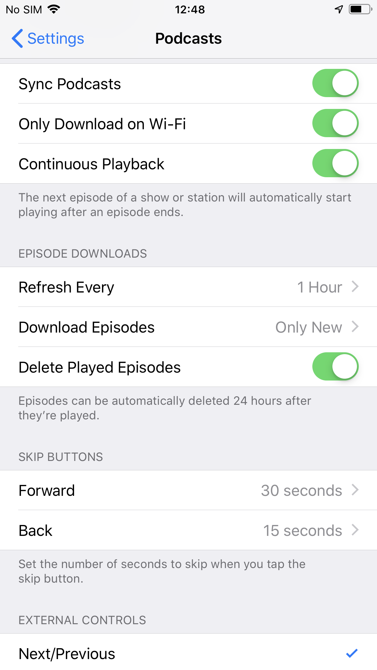 My settings reflect these. On the phone. I don't see where to set them on the computer. Theoretically - I think - the two ought to mirror each other. Instead, on the phone I have 6 episodes of a podcast remaining, the computer shows 12; the phone has 2 episodes remaining on another podcast while the computer shows 15. It's quite maddening. I keep deleting the same podcast episodes over and over.