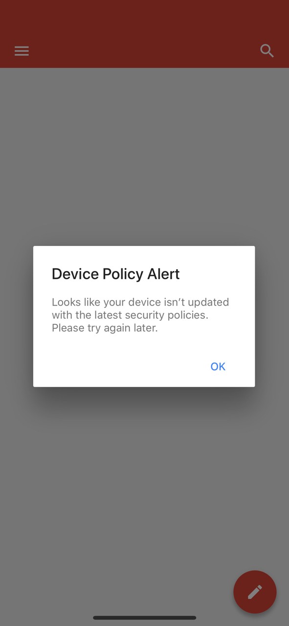 I using office mail has domain @tanthanhgroup.com. And when I access, its need me update the policy $%^*^, then, I down load the app "Google Device Policy' and update, then the app said 'Cant not update' .