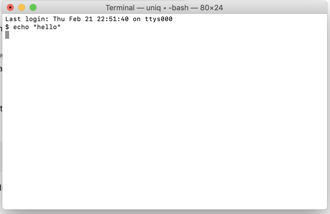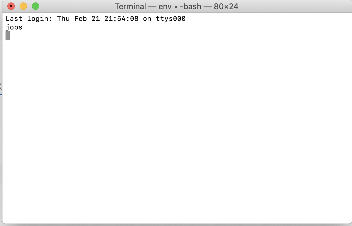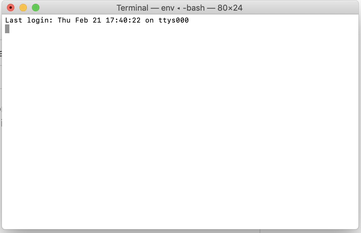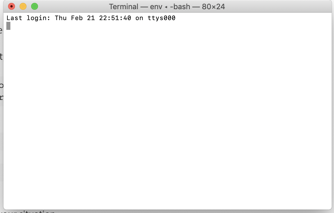 5) Hold down the command key and press the “N” key to open a new Terminal window with a bash shell. This time it should work. If so, you can close any non-functional Terminal windows.
