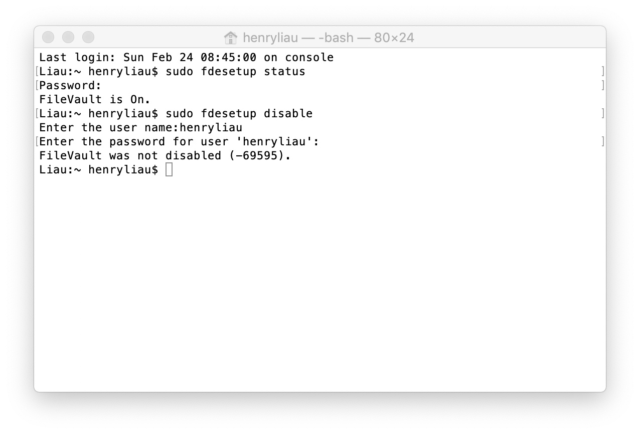 I'm at my wit's end because I've been trying to find solutions online of how to turn off FileVault, but nobody seems to have my specific FileVault problem. As shown in the photo below, it says my FileVault encryption has already finished but the "Turn off FileVault..." button is still greyed out. I've tried the Terminal method which is to type in "sudo fdesetup disable" but doesn't work.