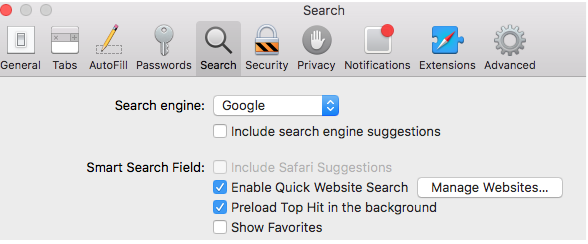 3. Safari > Preferences > Search > Smart Search Field > Enable Quick Website Search