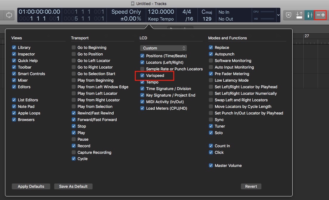 I have turned on the Show Advanced Tools option and the Varispeed button isn´t there. Can anyone help?
