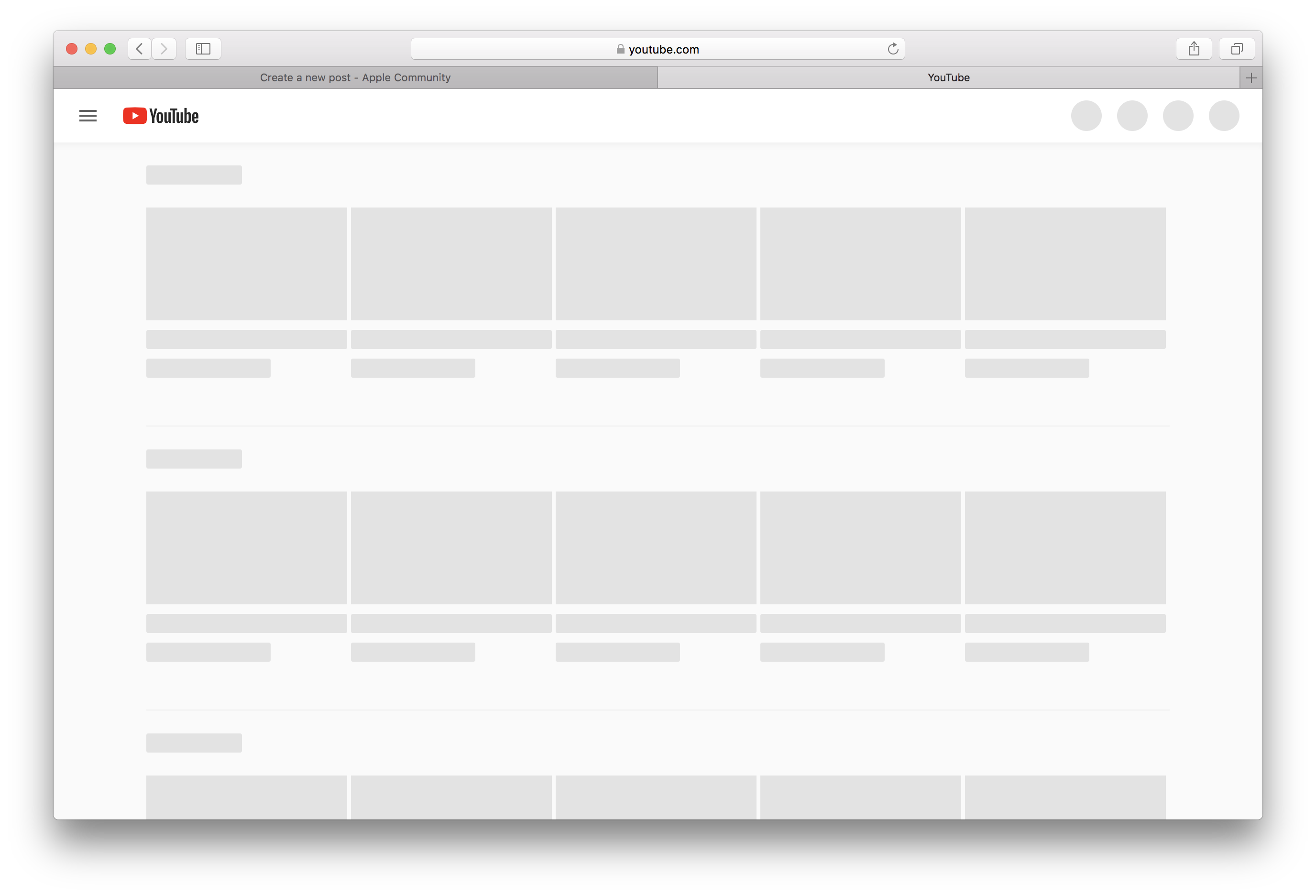 As you can see, I cannot click on anything. I can use youtube on other browser like google chrome but not safari. I have tried ways like delete cookies and caches. But it only work just after I delete all the cookies and caches. When I restart safari and login my google account again, it just come back to the same problem. Strange enough, this problem only appears in one certain account. Youtube works fine when I am logged out or I switch to other accounts. But the account with the problem is the account I always use and also I am not sure whether this problem will happen on my other accounts in the near future. So I hope someone can have some ideas or solutions about this.