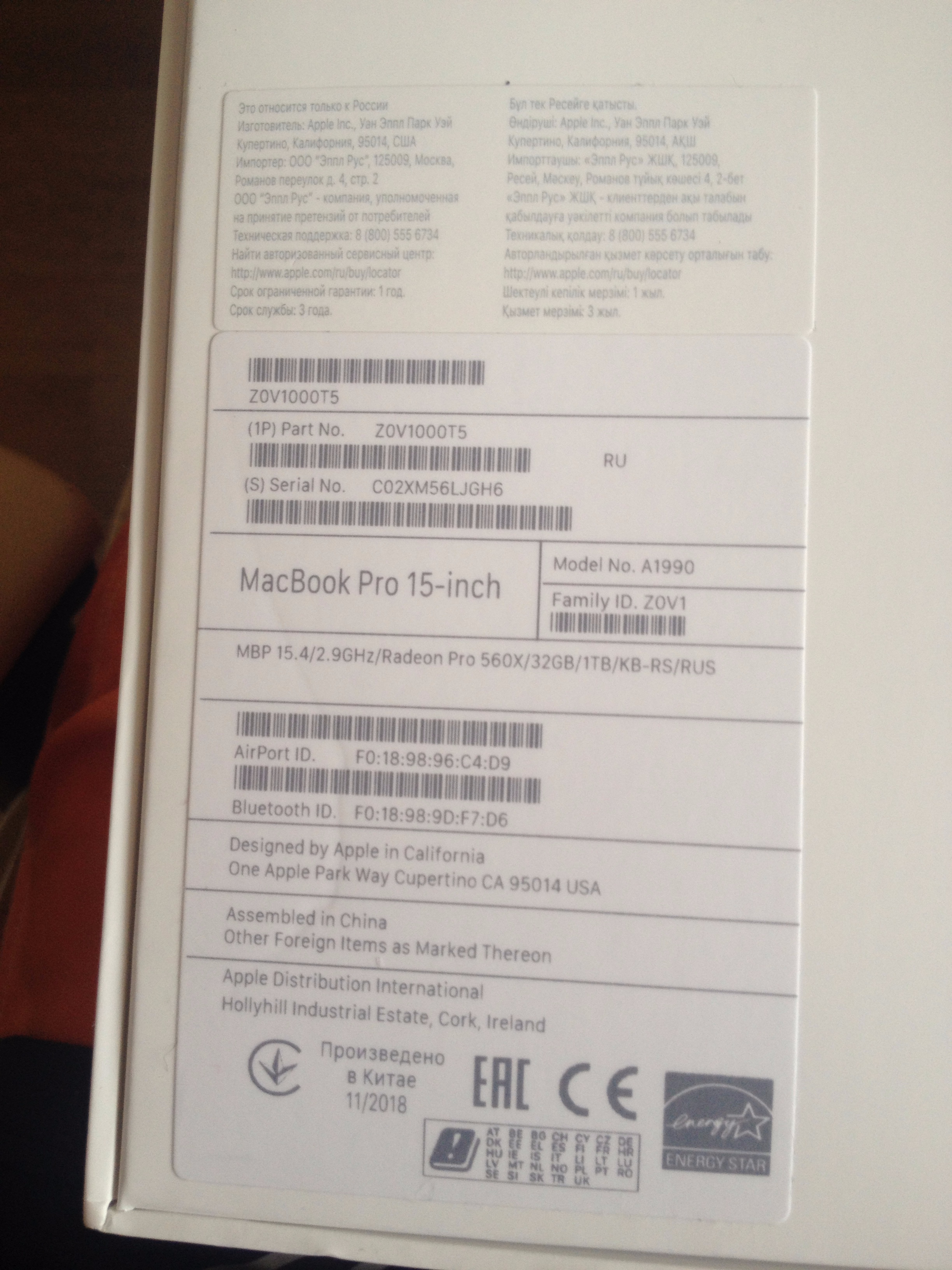 + I don't see "РСТ" mark on backplate and box. But maybe it's because I have CTO (custom) with i9/32/560x/1TB. Below I post photos: