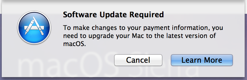 When I try to download it, it says that I have to confirm my billing information. When I click the Billing info button, it says I have to update my OS in order to update my billing information.