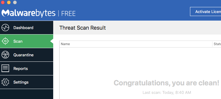 I scanned with Malwarebytes for Mac. It returned a "Clean" report.