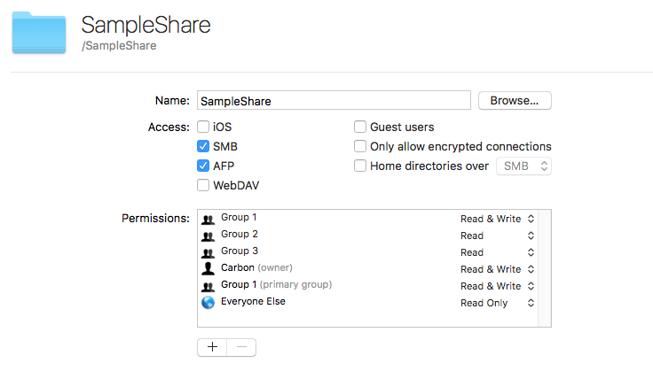 drwxr-xr-x+ 2 carbon wheel 68 Mar 25 14:55 SampleShare