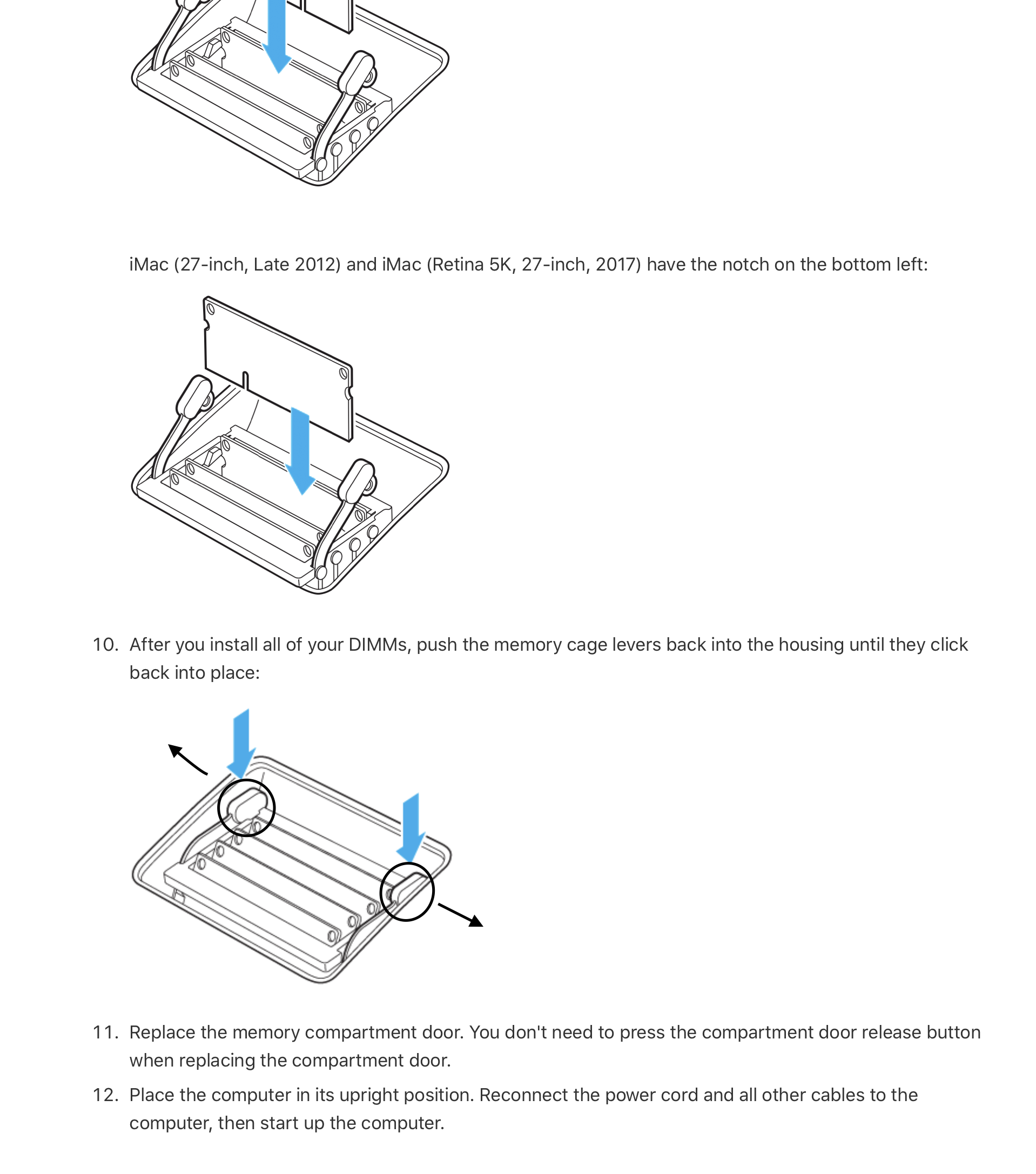 ram compartment won’t close on IMac 2017