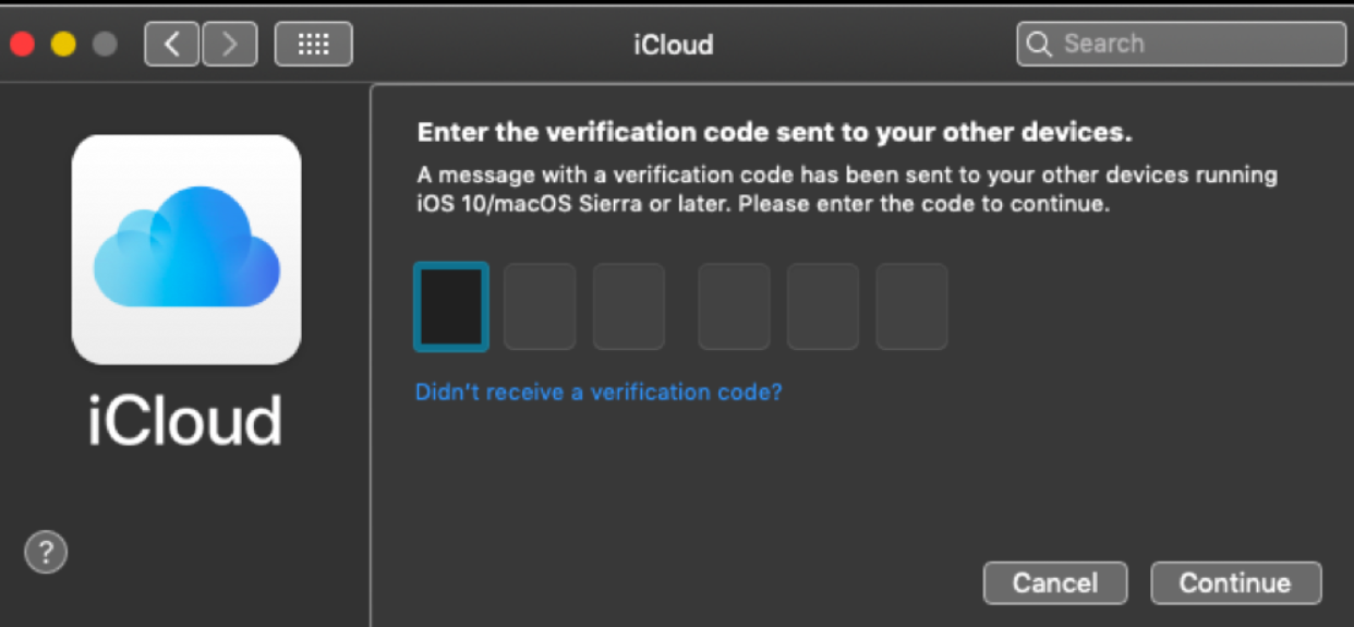 An apple verification code will appear on iOS , enter this verification code on your Mac book , click on continue .