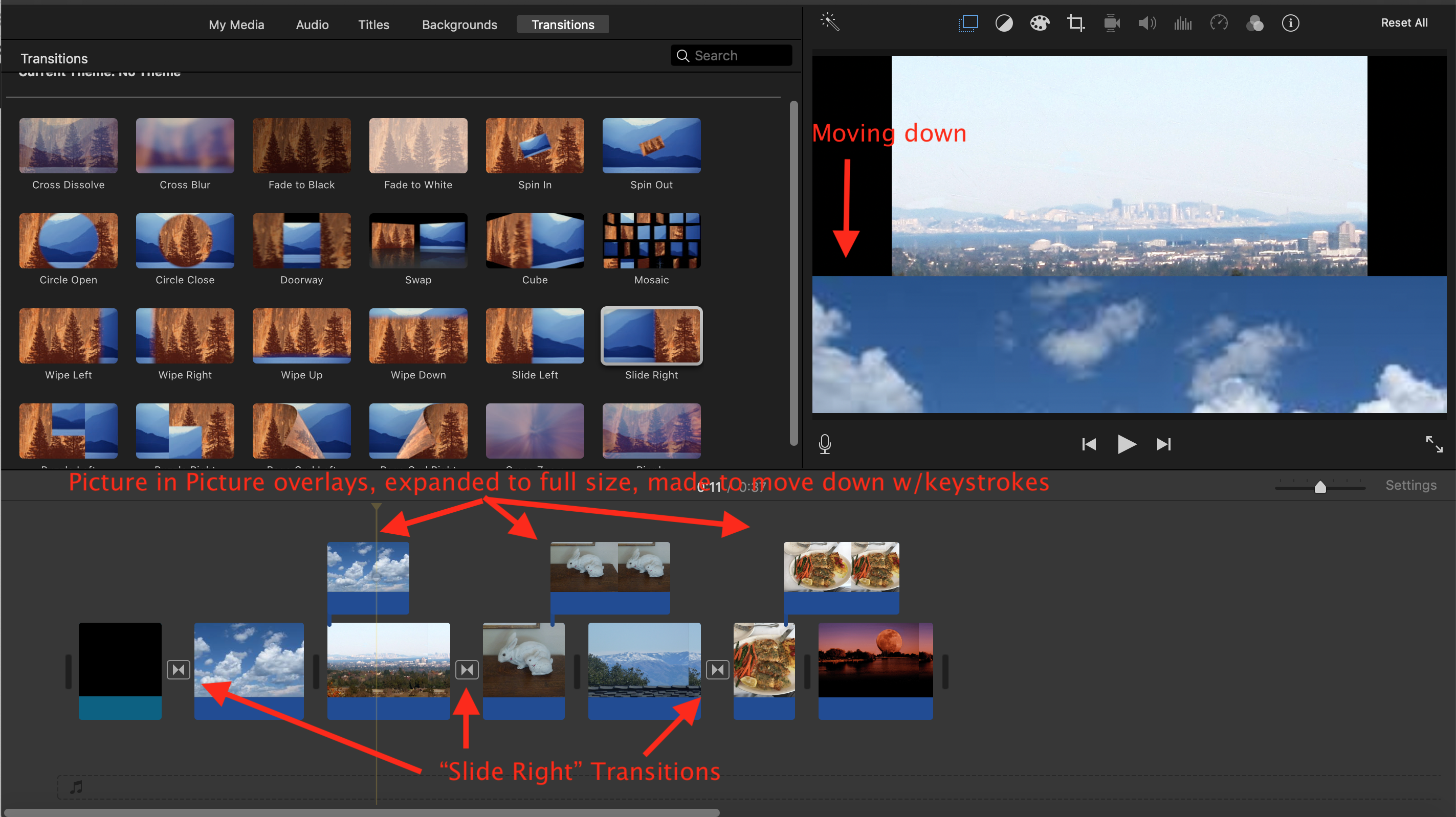 Trying to make slides that move across and down then across and down, but there is no 'slide down' transition that i can see? There is a 'wipe down' but that isn;'t the effect i'm after - need the slides to have the effect of pushing on to the next one.