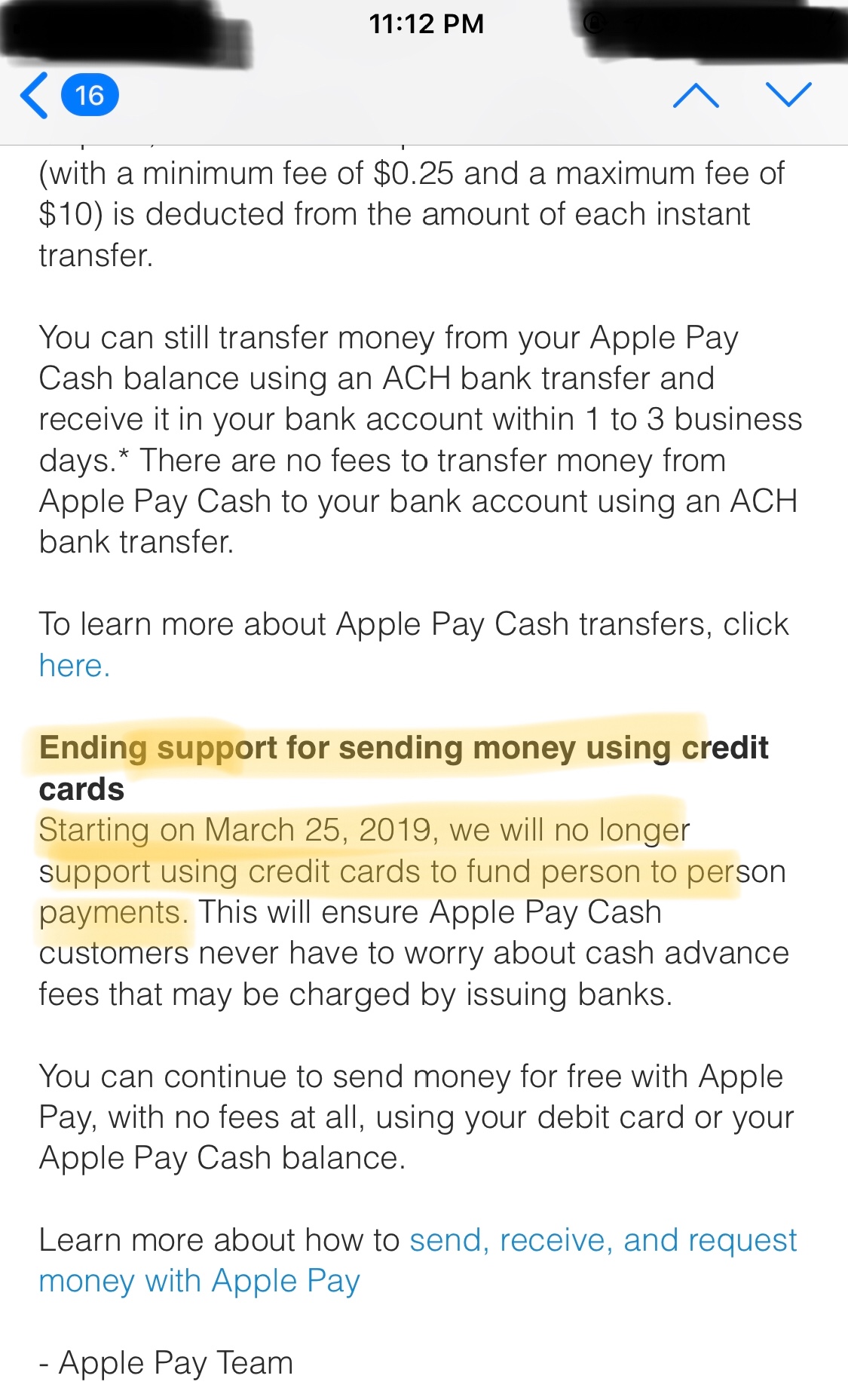 With this new update, I’m not longer able to send cash to a friend through text message. I have an AMEX credit card that I use for everyday purposes connected to Apple Pay. Is this because of the update and only available for debit cards now? Confused.