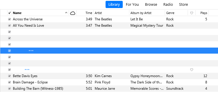 The music plays, but the titles and song info disappear when I hover over my library list. They seem to disappear in blocks of multiple rows. I can correct by mouse clicking outside the list, but problem returns as soon as I go to select a song.