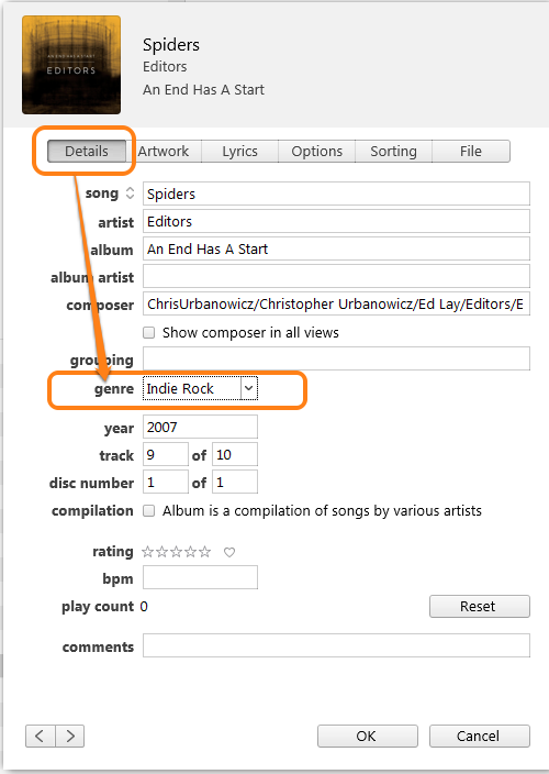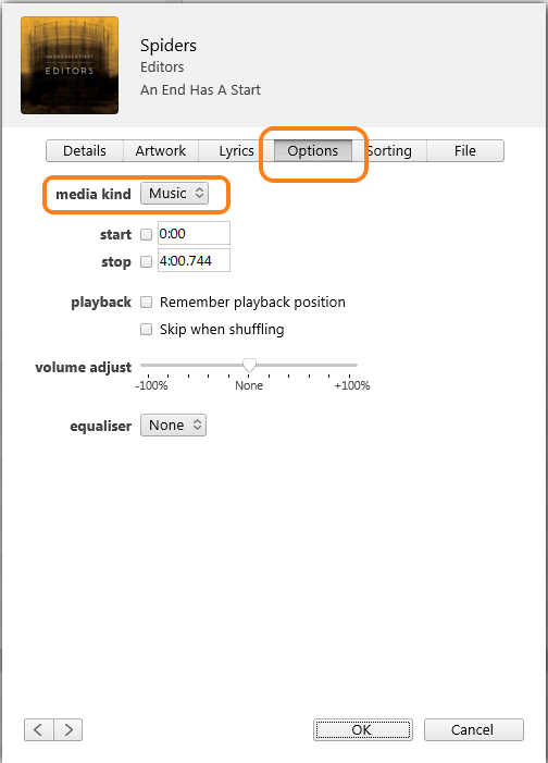 That field denotes a genre - a style of music or the type of story. Let's look at the media kind for this song, on the Options tab: