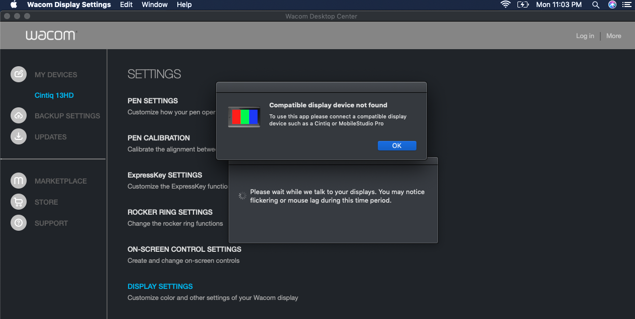 Wacom Cintiq 13HD Touch VS Mojave OS