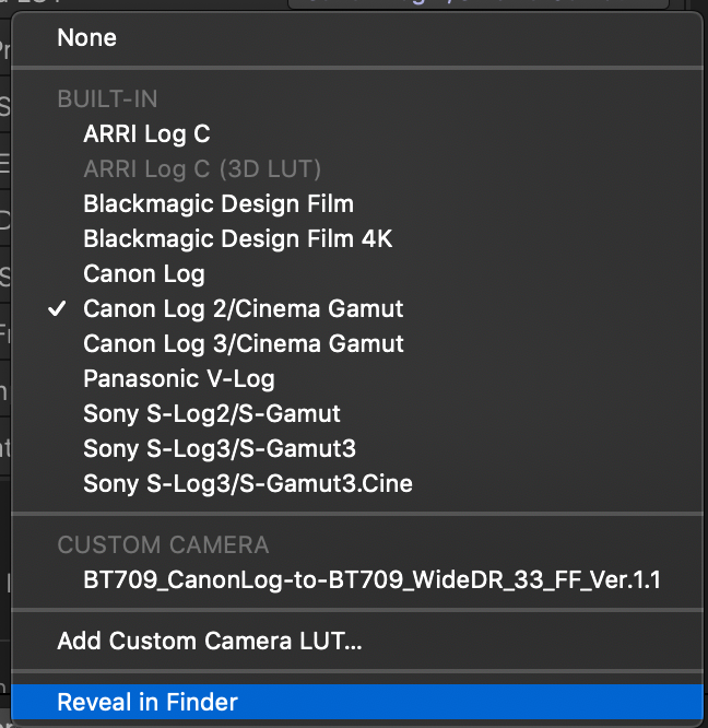 However, I can't figure out what the LUT called 'Canon Log2/Cinema Gamut' actually is or where it is stored.