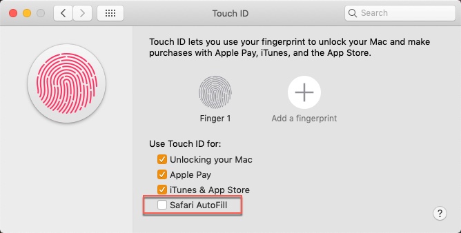 For those who get blind sided by this issue the SOLUTION to is is to head over to System Preferences and uncheck the 'Safari Autofill' option under Touch ID as shown. Life returns to normal.