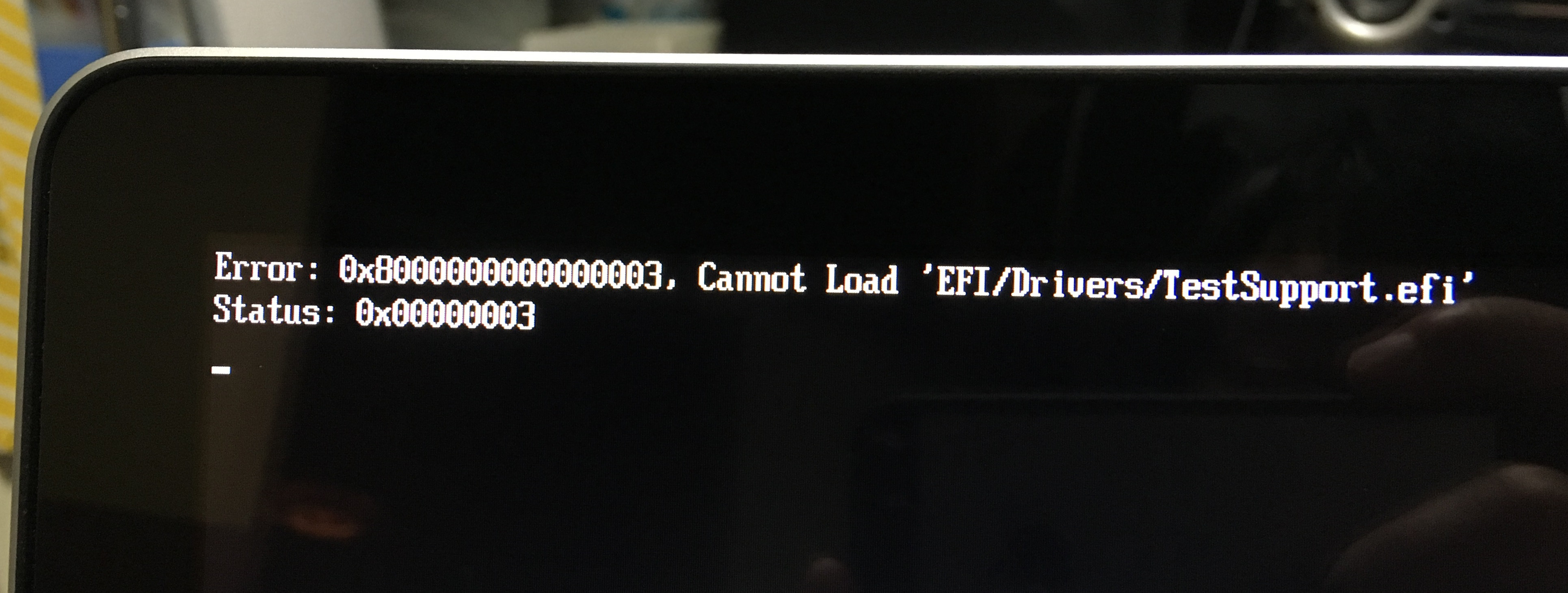 Error: 0x8000000000000003, Cannot Load 'EFI/Drivers/TestSupport.efi'