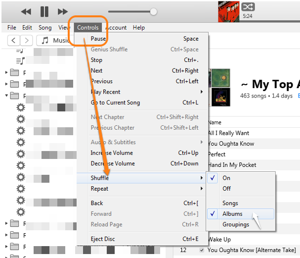 However, on an iPod, it is not possible to set a Playlist to shuffle by album. In an iPod/iPhone Playlist, the only shuffle option is to shuffle songs. Note (in the screenshot above) that that option is available in the Tunes as well. Do you see the difference?