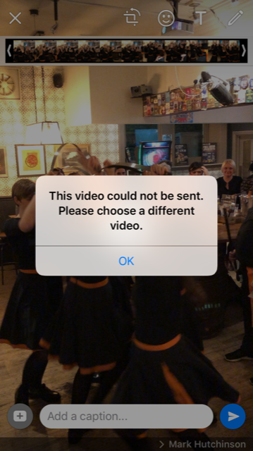 and how long. But if I try and send anything small even 1 second I get this error all the time, pictures work fine Wifi or 4g. It's really random I can forward peoples video's sent to me or myself.